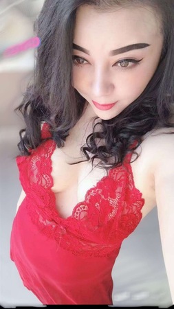 Sie ist eine schlanke, sympathische asiatische Schönheit,